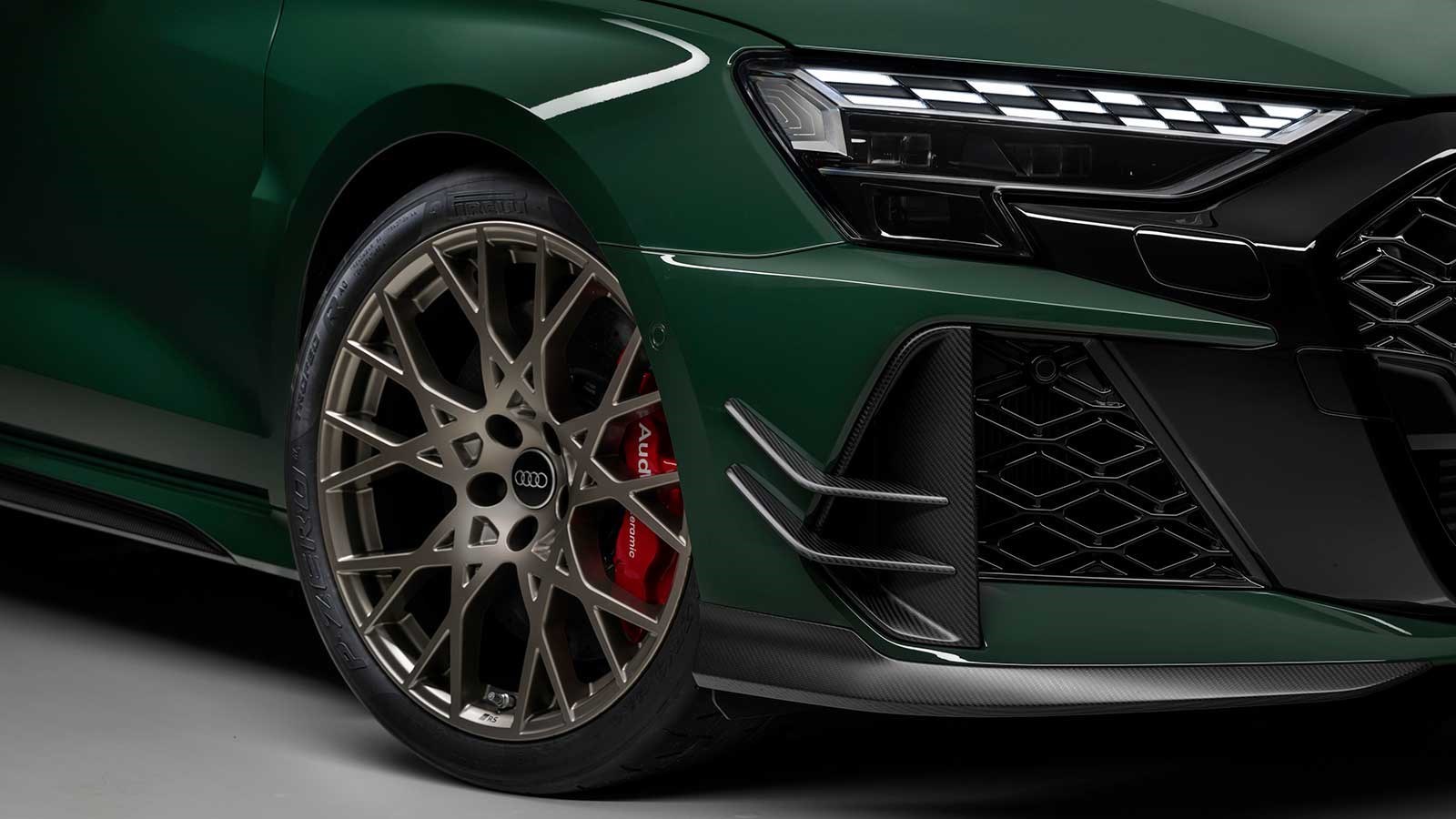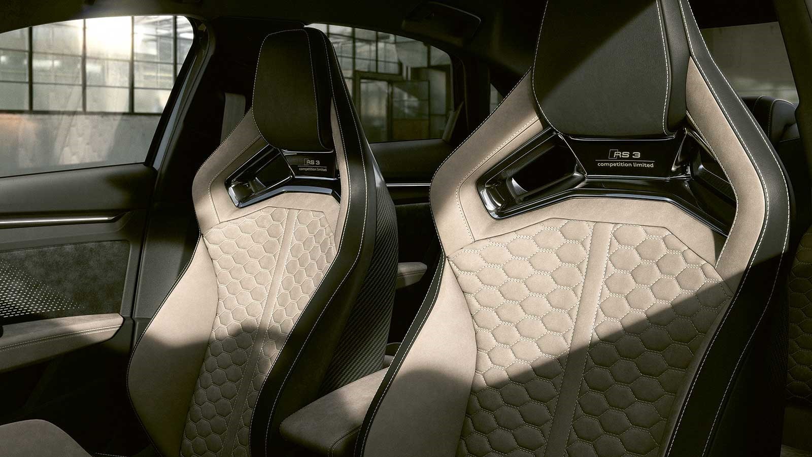 Izvana je RS3 Competition Limited prilično ukusno dorađen. Sprijeda izgleda još malo agresivnije, a pogled s boka otkriva zlatne naplatke. Unutrašnjost RS3 je obično uvijek crna, ali u ovom slučaju je završena i u svjetlijim nijansama. Naravno, postoje posebni logotipi i značke, a Audi tu i tamo ubacuje malo dodatnih karbonskih vlakana.